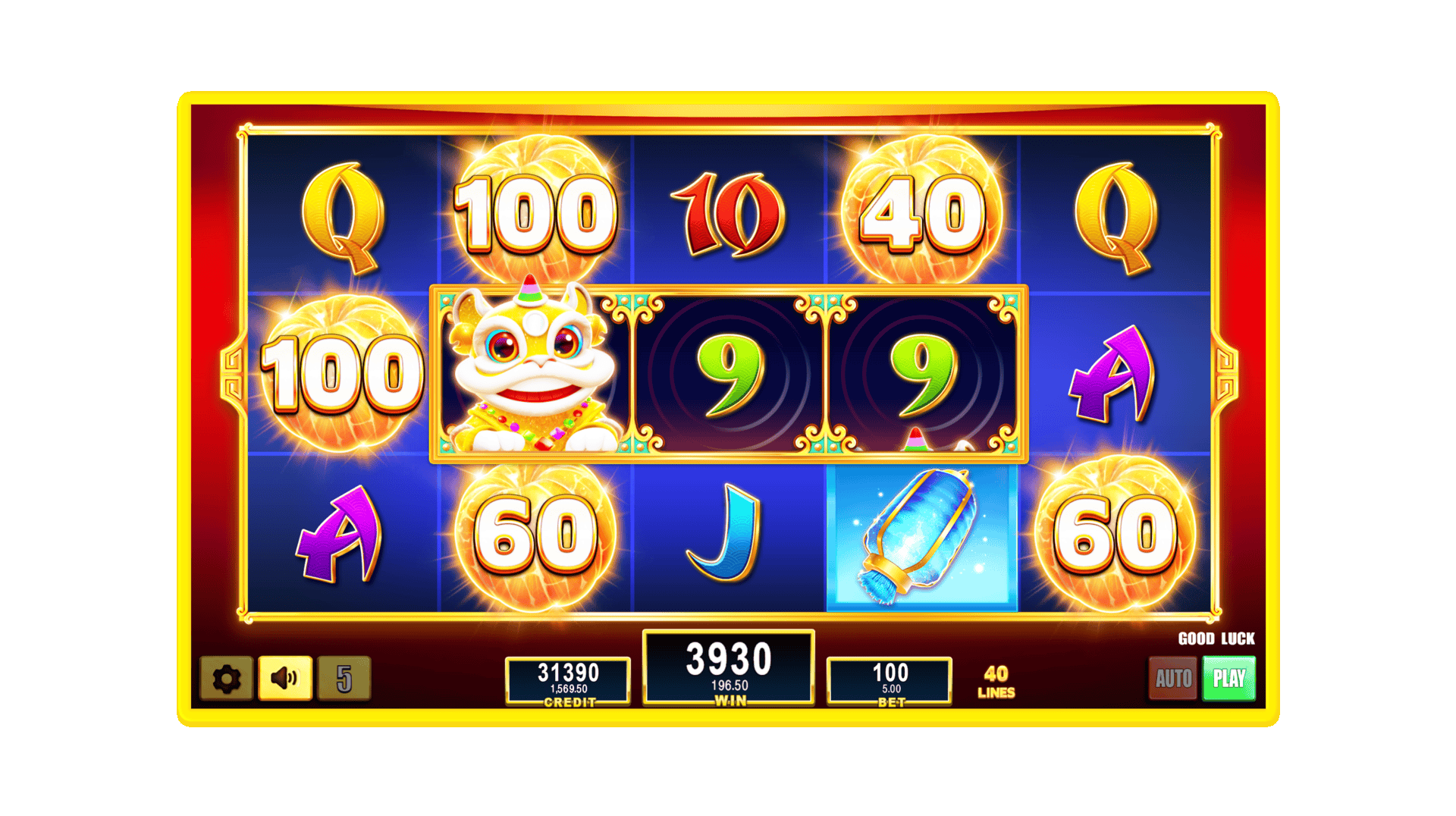 Cuando 3 leones caen en las posiciones centrales, triplican las naranjas y los Mystery Prizes.